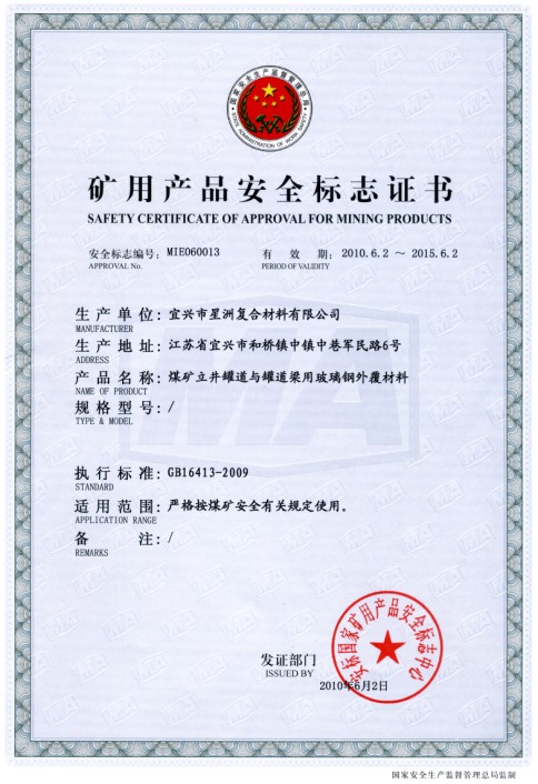 玻璃钢复合材料罐道-罐道梁安标证(MA)